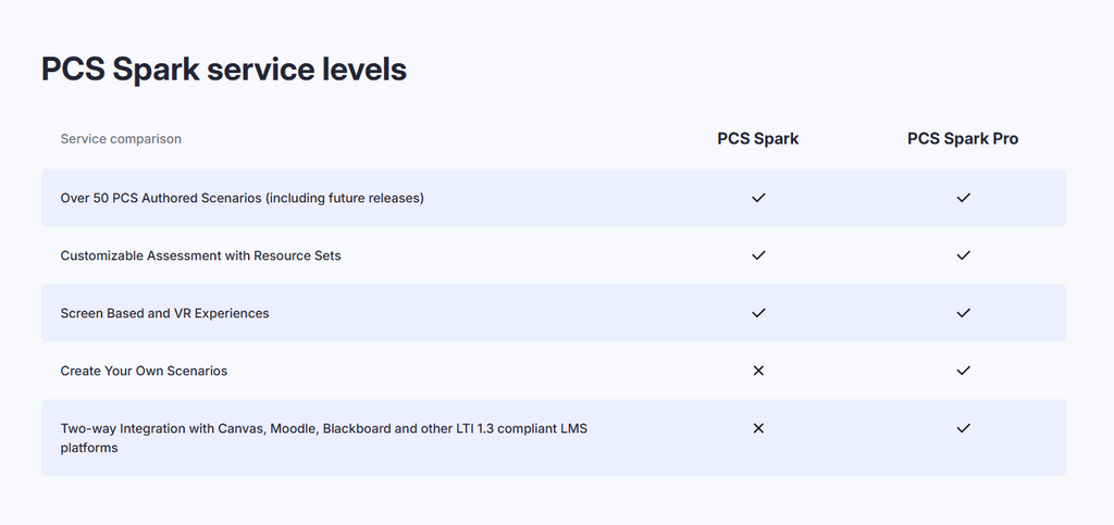 SPARK Pro includes all SPARK features, plus scenario creation, two-way LMS integration with Canvas, Moodle, Blackboard, and other LTI 1.3–compliant platforms, and AI-generated voices that enhance realism during patient interactions. Both SPARK and SPARK Pro licenses are issued for a one-year term, allowing learners to practice realistic patient encounters in a safe, repeatable, and measurable environment.